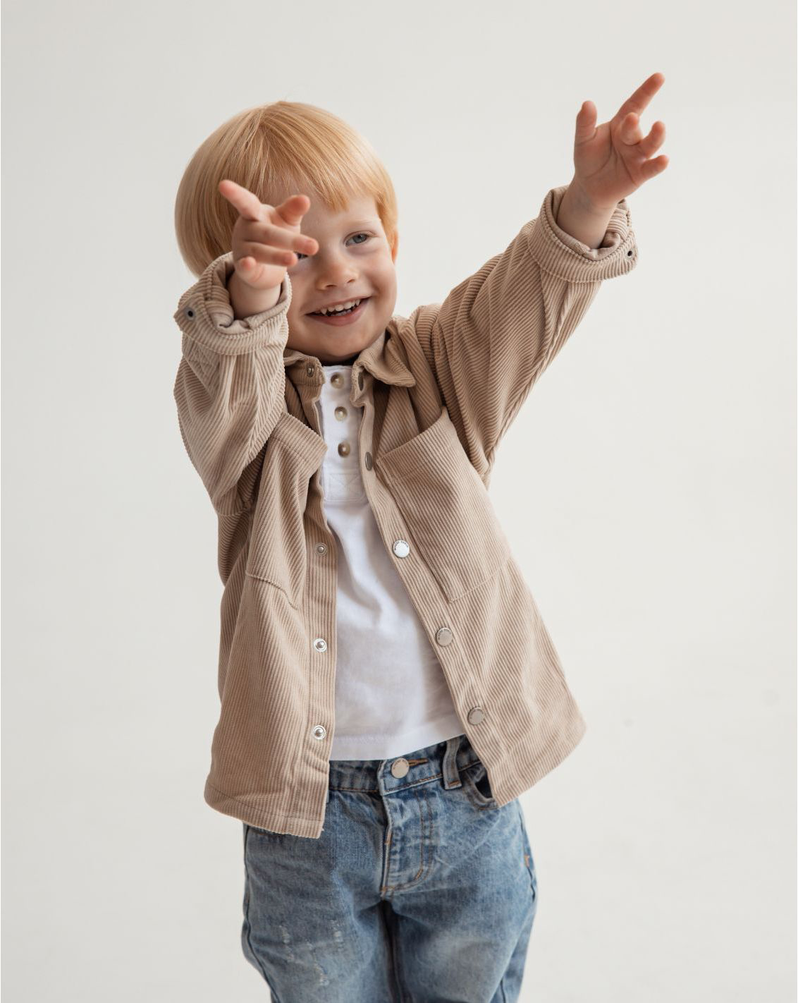 A meticulous line for boys, ideal for holidays and special events! Corduroy top with two front pockets and buttons. Comes in sizes 2-3 and up to 7-8 years. Washing instructions according to the garment label. Fabric composition: 17% cotton. 80% polyester. 3% elastane.