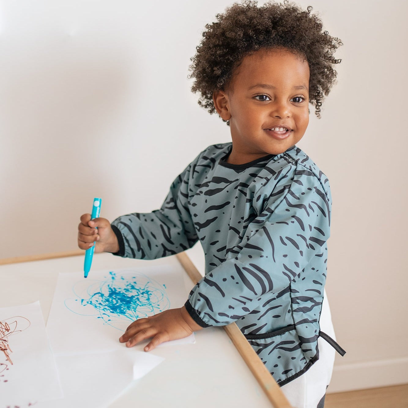 - Long sleeved bib is ideal for mealtimes and messy play sessions with your little one