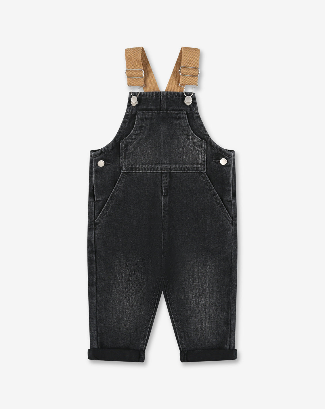 Classic denim overalls. Comes in sizes 0-3 and up to 18-24 months.
