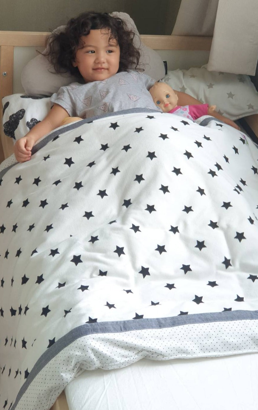 Can open the zipper to insert duvet and use as winter quilt for warmer season or it can be great as a playmat