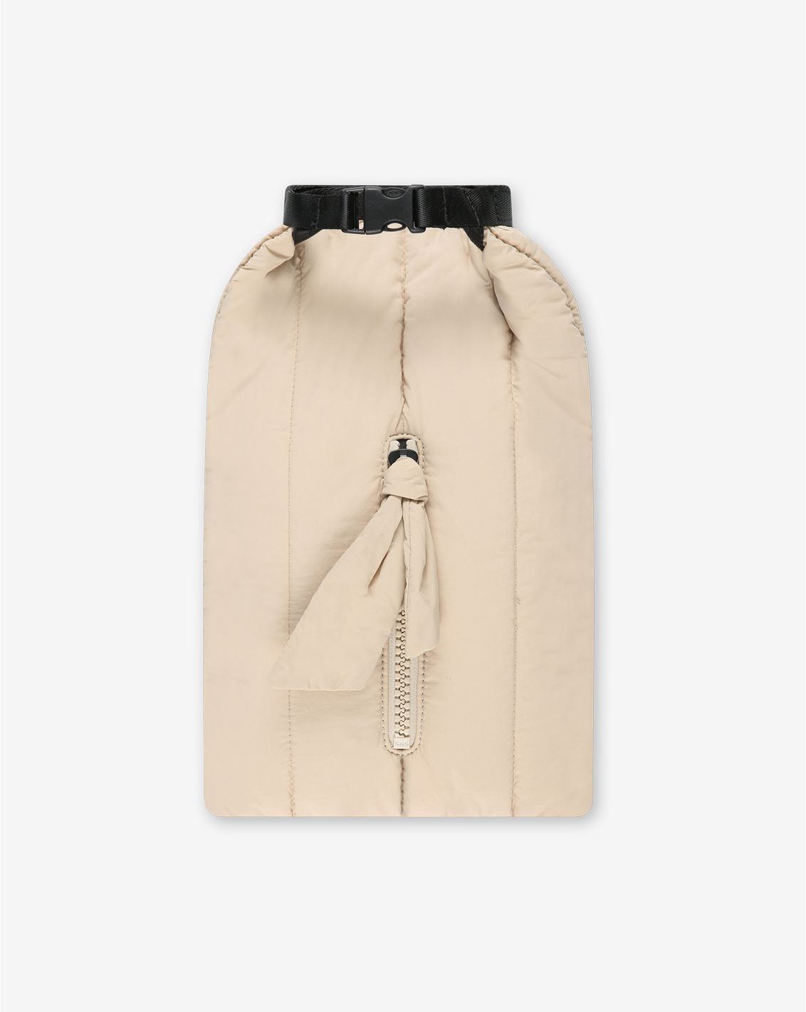 The diaper bag made of nylon fabric with quilt stitching and details in an oversized look that can be carried and hung allows the items to be taken out of it with only one hand and leaves a free hand to support the baby.