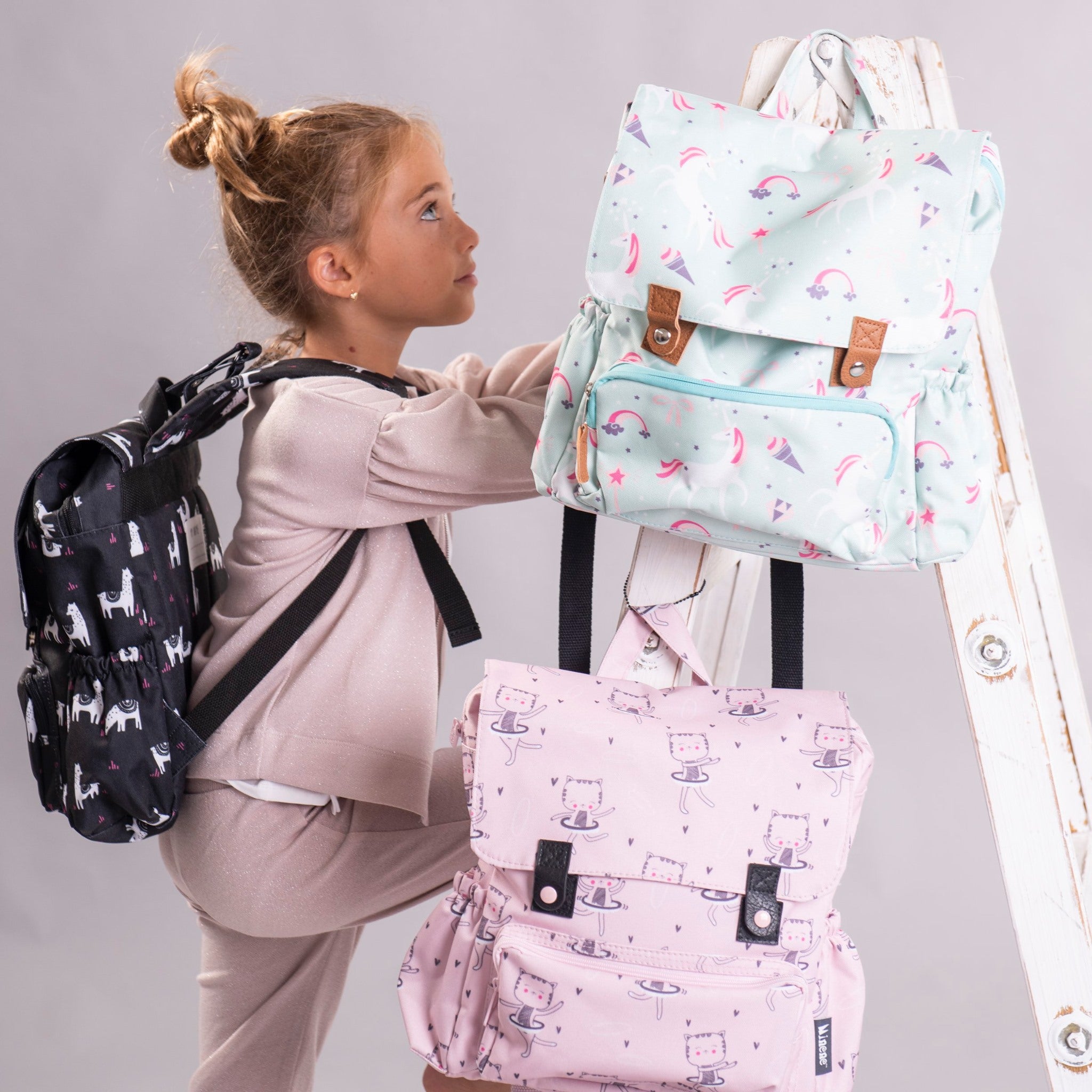 - Our lovely little backpacks are lots of fun for 'big kids' who are on the move. The spacious bags have a large main pocket as well as drink bottle holders.