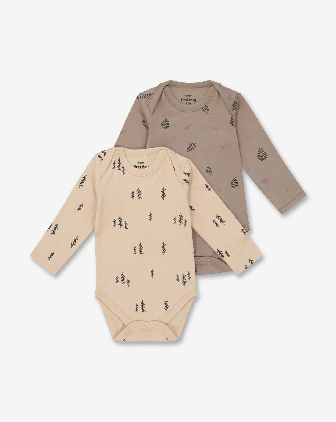Minene's baby clothing collection is softly and comfortably designed for everyday use, and is made of 100% pleasant cotton. A pair of long lsleeve bodysuits in sizes NB and up to 18-24m.