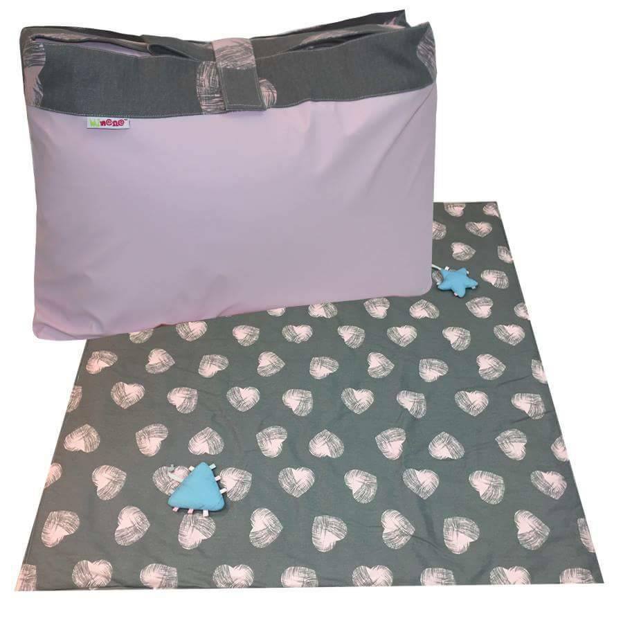 3. Portable Activity Mat size: 135x135cm. - waterproof- pink heart on grey with a matching bag - easy to carry