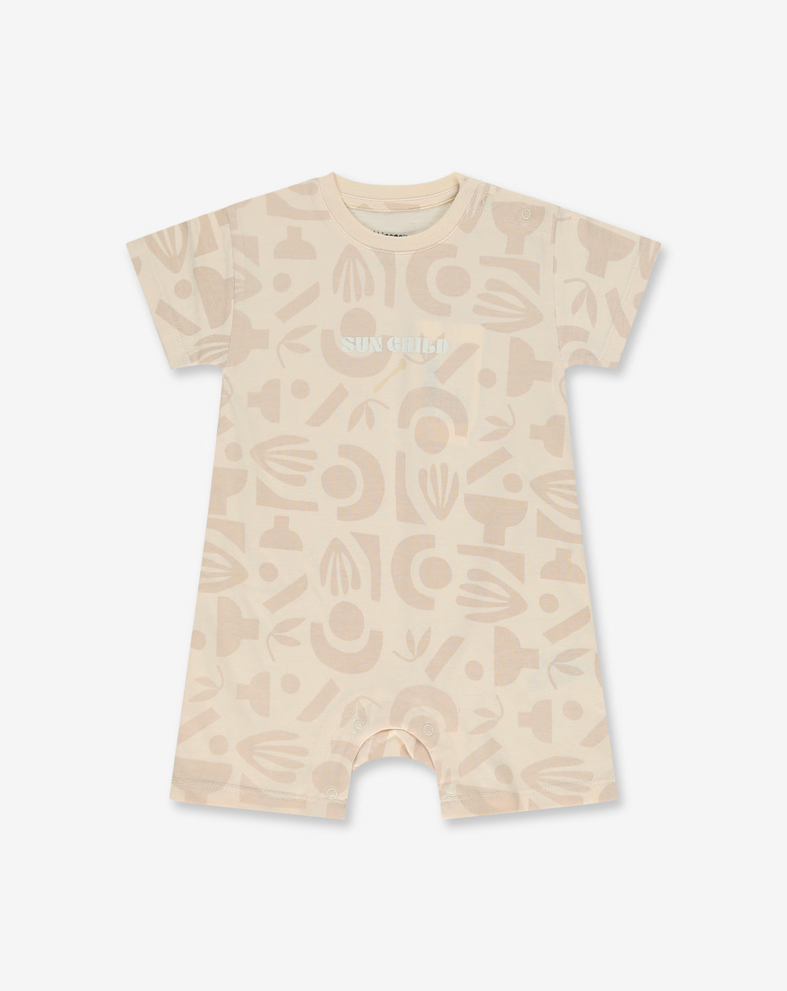 ชุดหมีขาสั้นมีลายและกระดุมหน้าอก สวมใส่สบาย