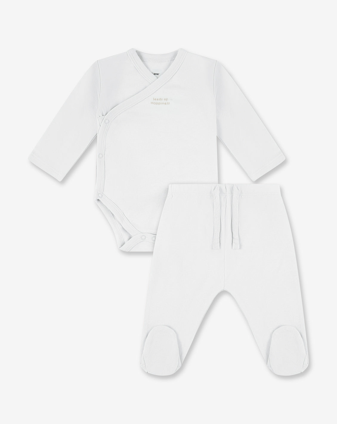 Minna's initial clothing collection is softly and comfortably designed for everyday use, and is made of 100% pleasant cotton. A bodysuit set in a shell cut and pants with legs size NB Washing instructions: according to the label.