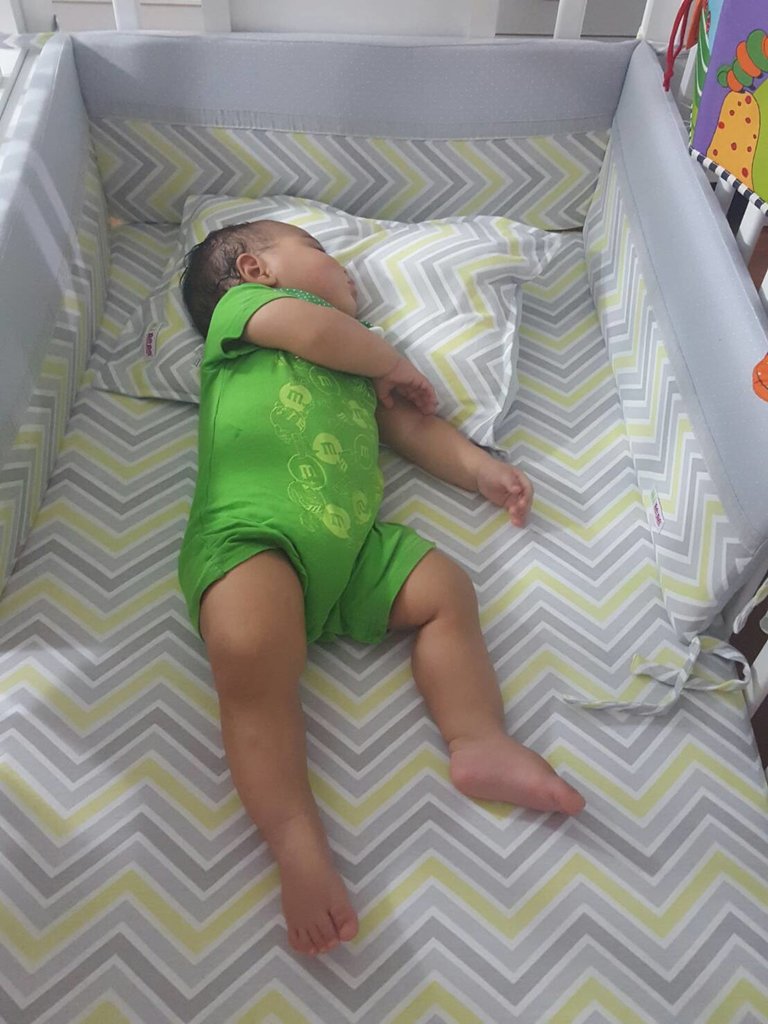 The soft bumper provides a frame around the edge of the cot and offers protection from the hard wood bars.
