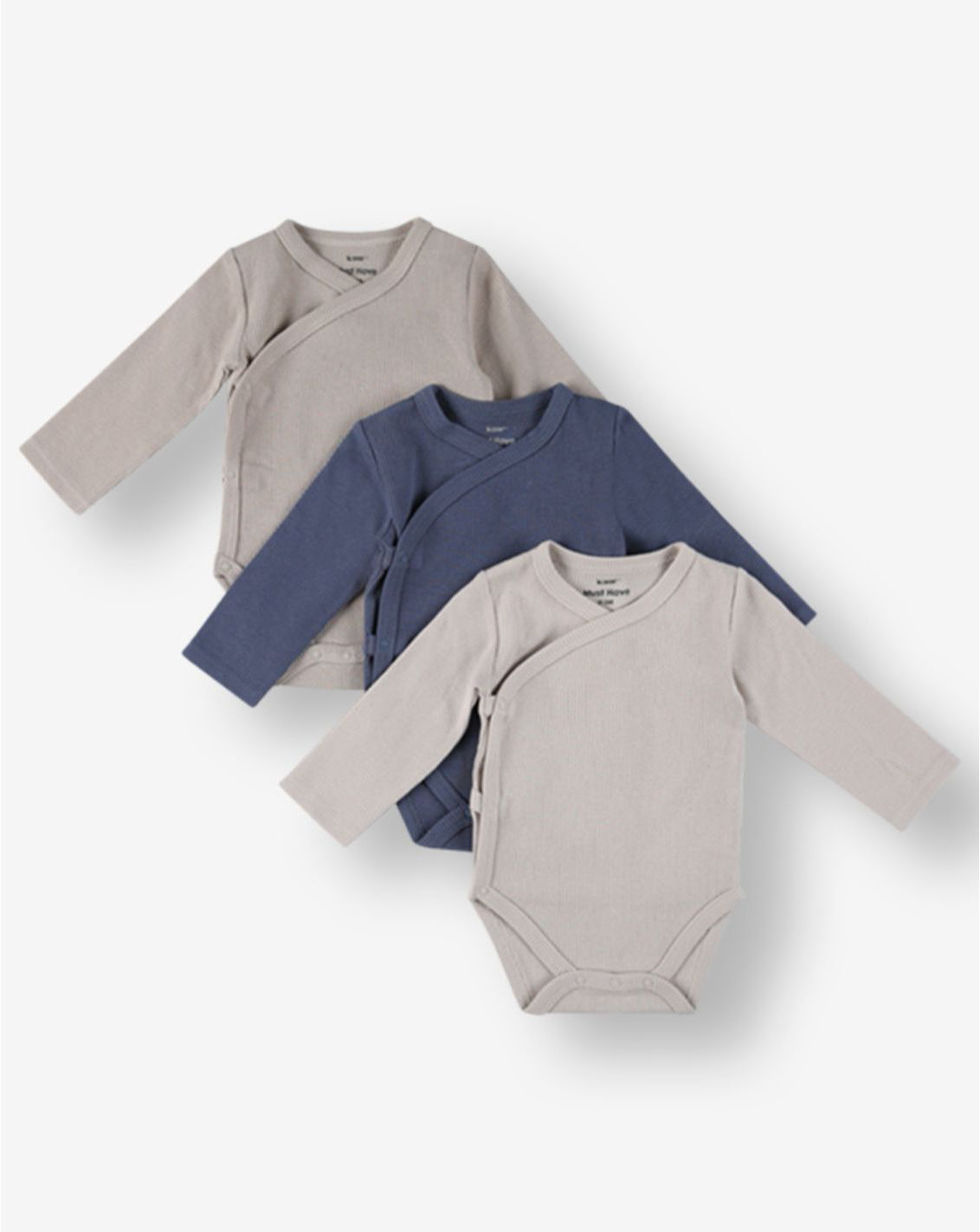 Mini Wardrobe Collection Our collection of cases is the basis of your baby's wardrobe, in the collection you will find trios of bodysuits, pants and pairs of overalls. The fabrics we used in this collection are pointel for girls, for a romantic look with rose ribbon decoration, and pique for boys with wooden button decoration. The colors are basic colors and the fabrics are made of soft and pleasant cotton. The bodysuit trio: in sizes NB and up to 18-24 months. In sizes NB and 0-3 in a shell cut suitable for dressing soft babies.