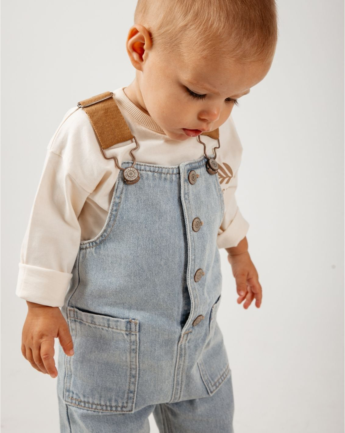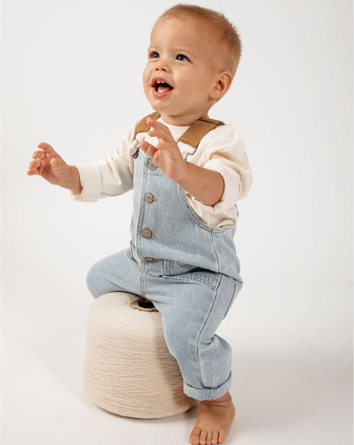 คอลเลกชัน Tiny Denim ของเราออกแบบมาเพื่อความสบายสูงสุดของลูกน้อย! ผลิตจาก ผ้าฝ้ายเนื้อนุ่มผ่านการขัด (brushed cotton) ที่ให้สัมผัสนุ่มละมุนต่อผิวบอบบาง พร้อม คุณสมบัติยืดหยุ่นสูง ช่วยให้ทารกและเด็กวัยเตาะแตะเคลื่อนไหวได้อย่างอิสระโดยไม่อึดอัด