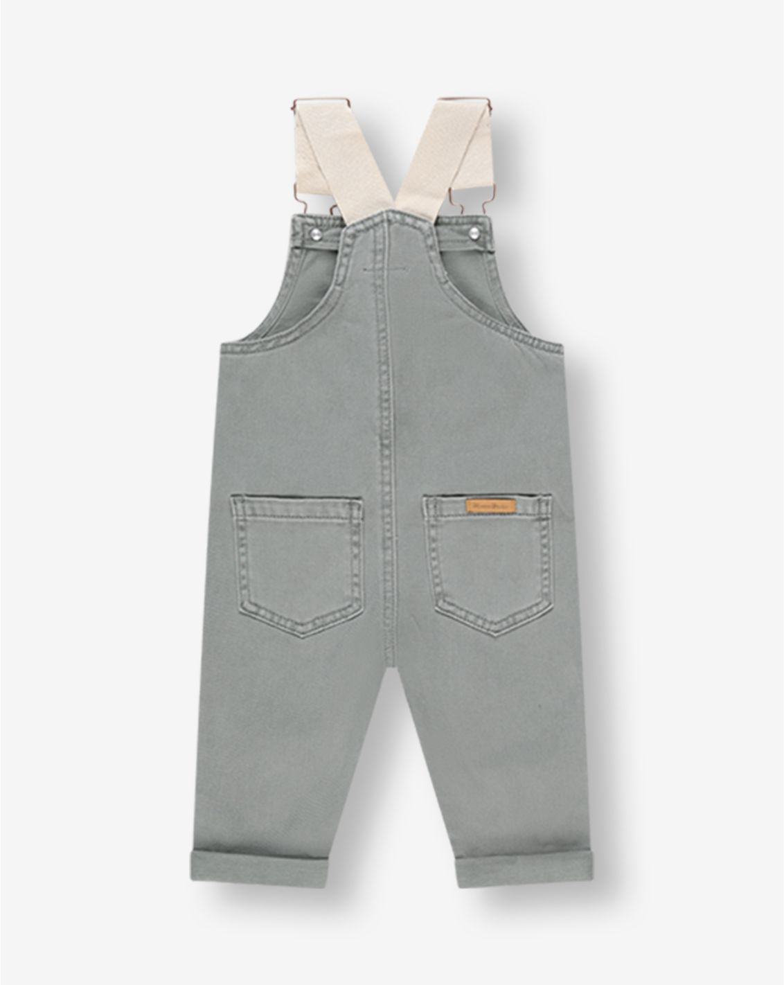 ชุดจั๊มสูทมีดีไซน์ วินเทจคลาสสิกเหนือกาลเวลา โดดเด่นด้วย สายรัดคอนทราสต์ทำจากผ้าแคนวาสคุณภาพดี ที่ทั้งทนทานและเพิ่มลุคเก๋ให้ลูกน้อย
